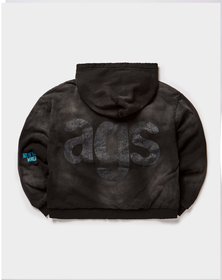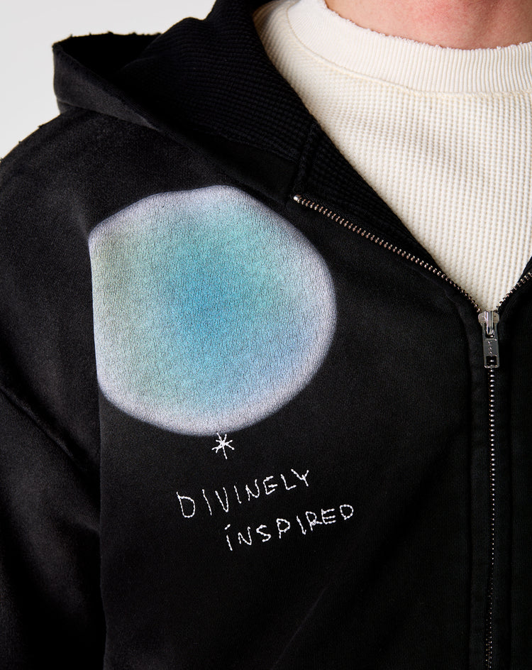 The A Good Soul Disguised Divine Zip-Up Hoodie offers a relaxed silhouette with washed detailing and bold graphics throughout. Designed with a zip-up front, classic hood, and ribbed cuffs and hem.
