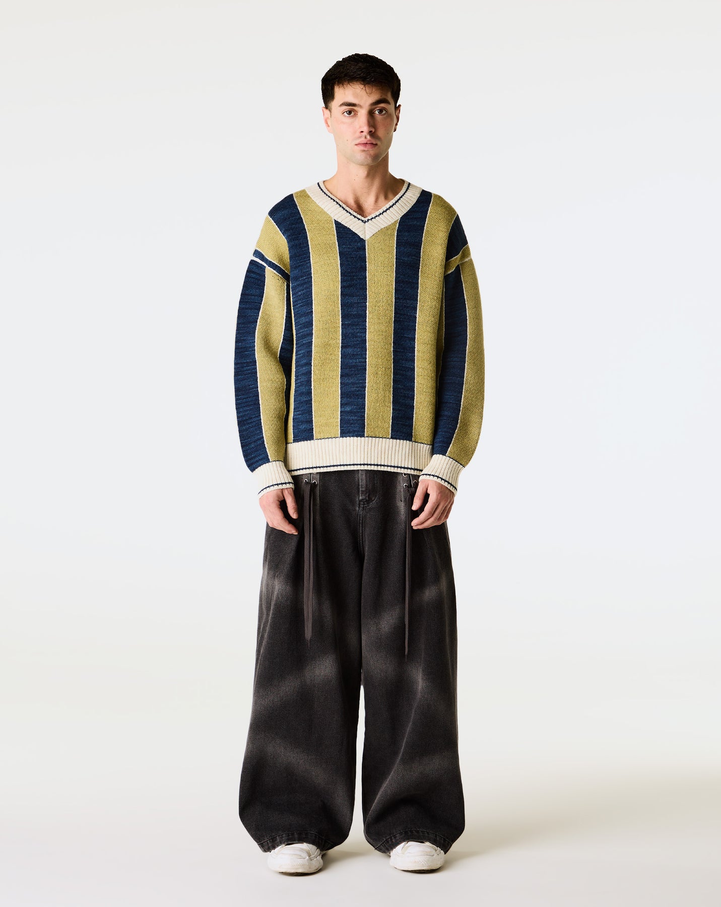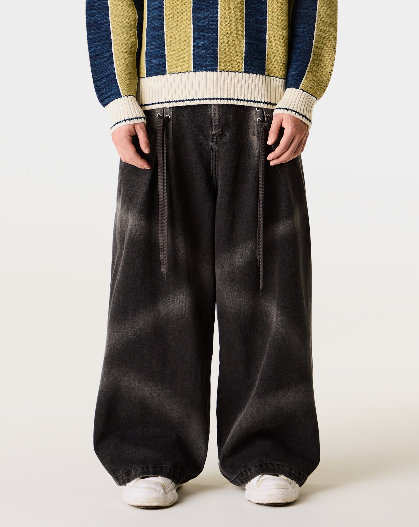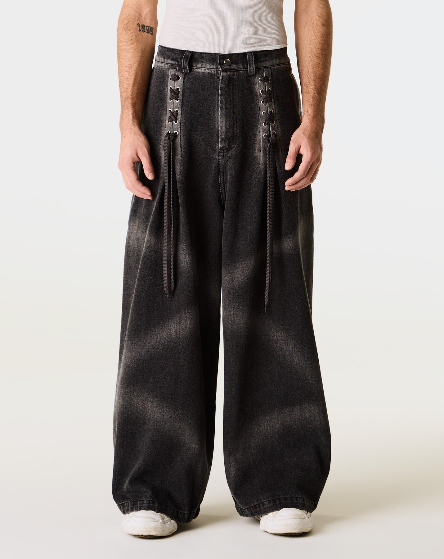 The Pas Une Marque Pas Denim Barrettes stand out with barrette detailing and a high-rise, wide-leg shape. Made from cotton blend denim with faded lines, they redefine relaxed streetwear style.