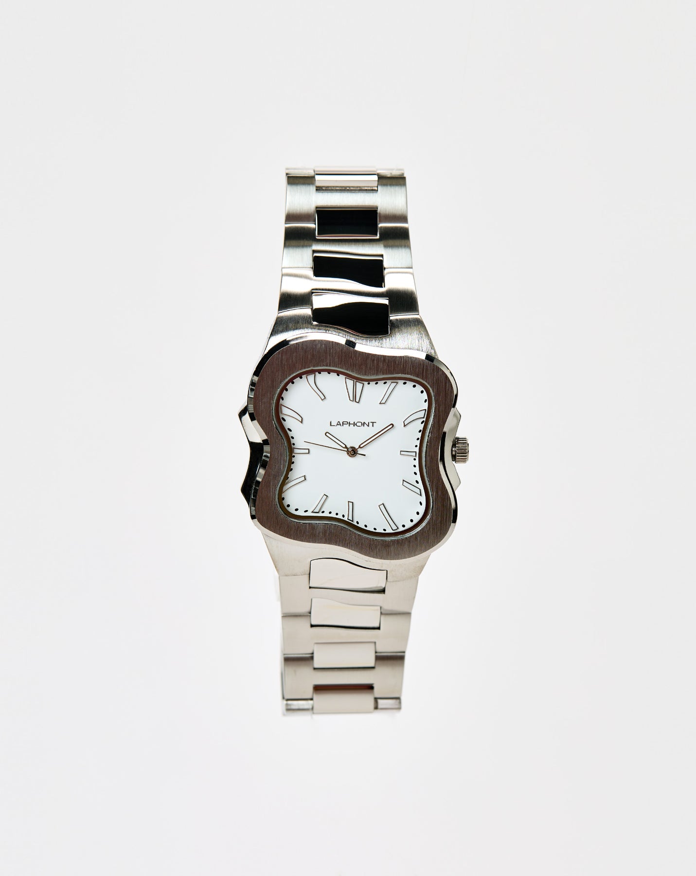 The Laphont Argonaut Watch stands out with its asymmetric design crafted in durable chromium alloy. Featuring a stainless steel band and Japanese quartz movement, this watch comes with its own case.