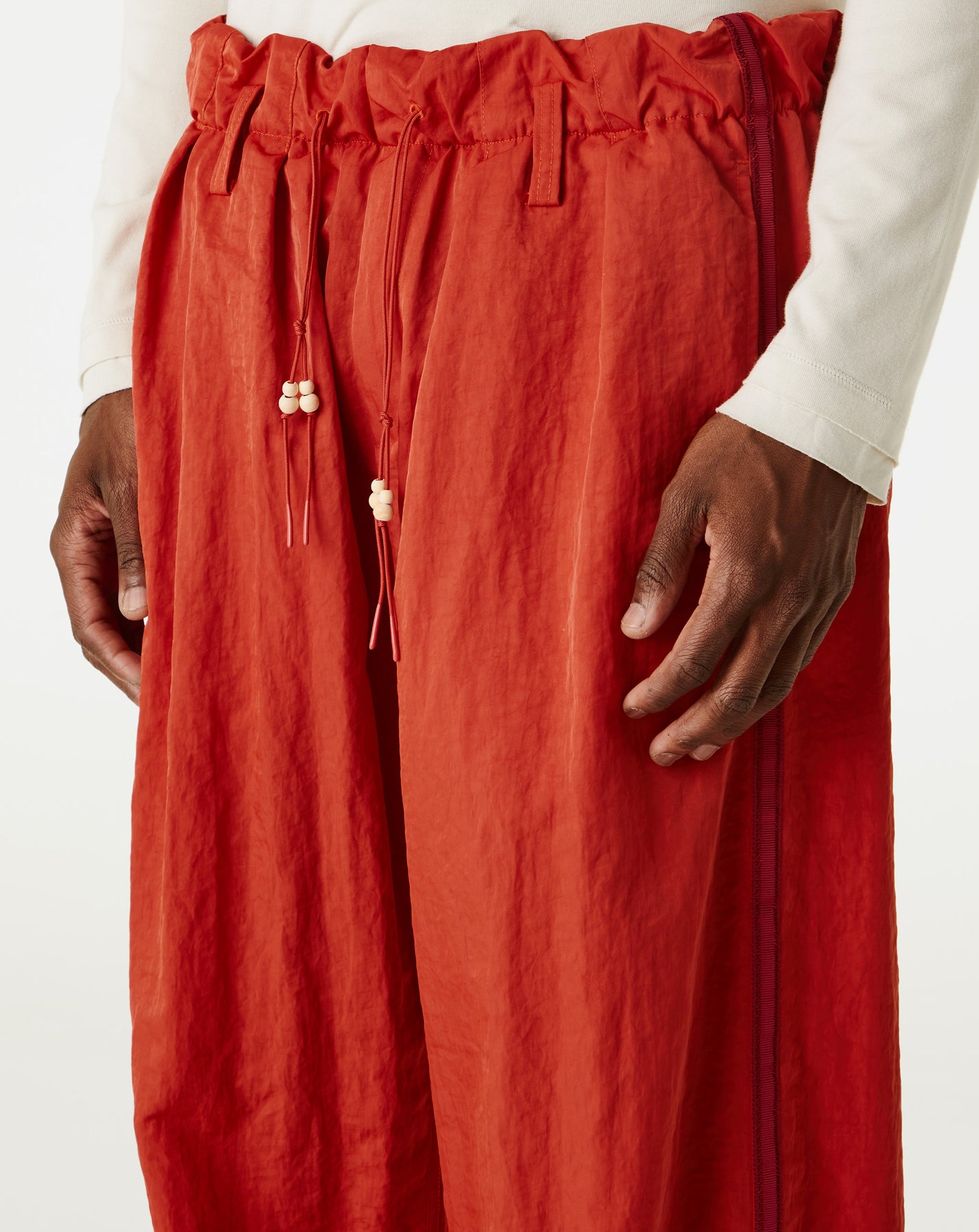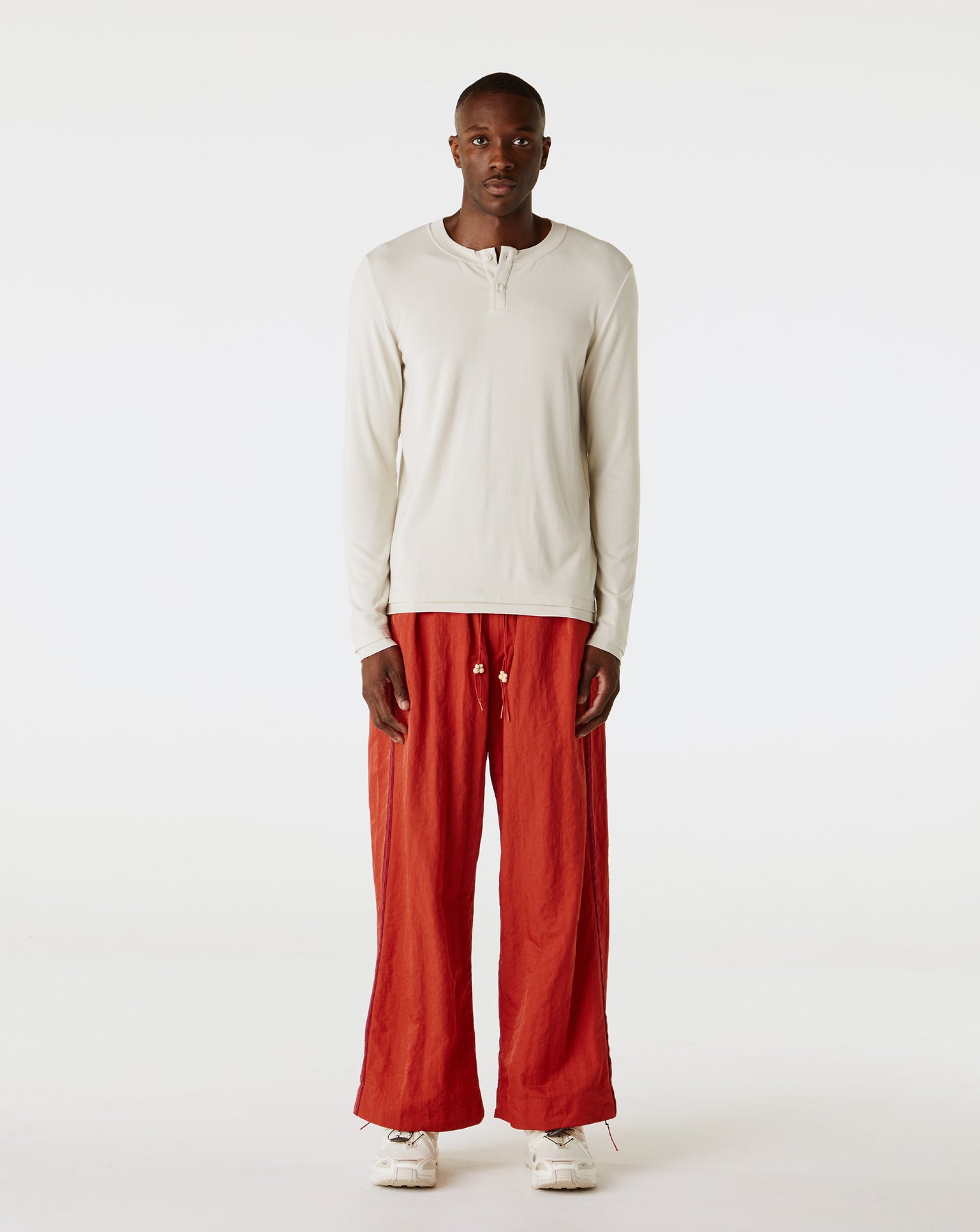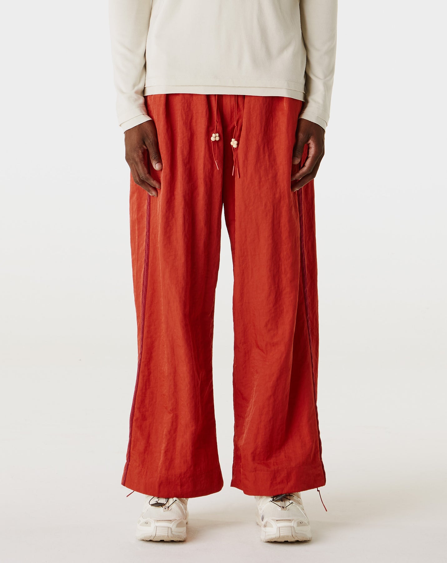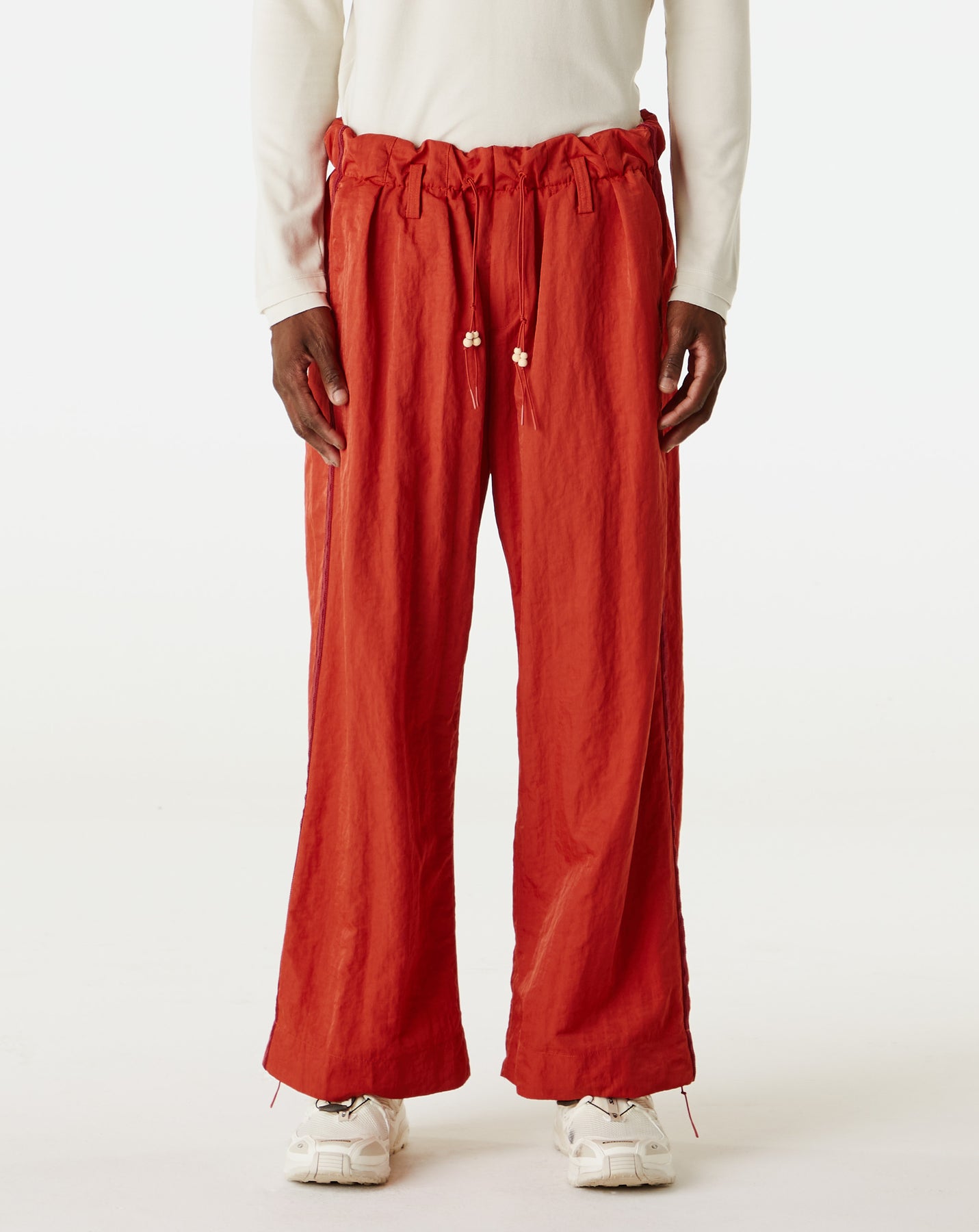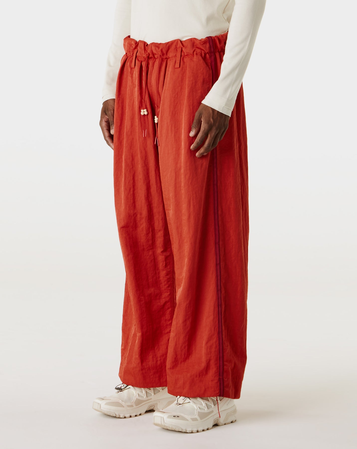 The Simple Project Side Seam Loose Trousers feature a relaxed fit and wide legs with contrasting double stitch details. Built with nylon, these trousers offer durability and a modern look.