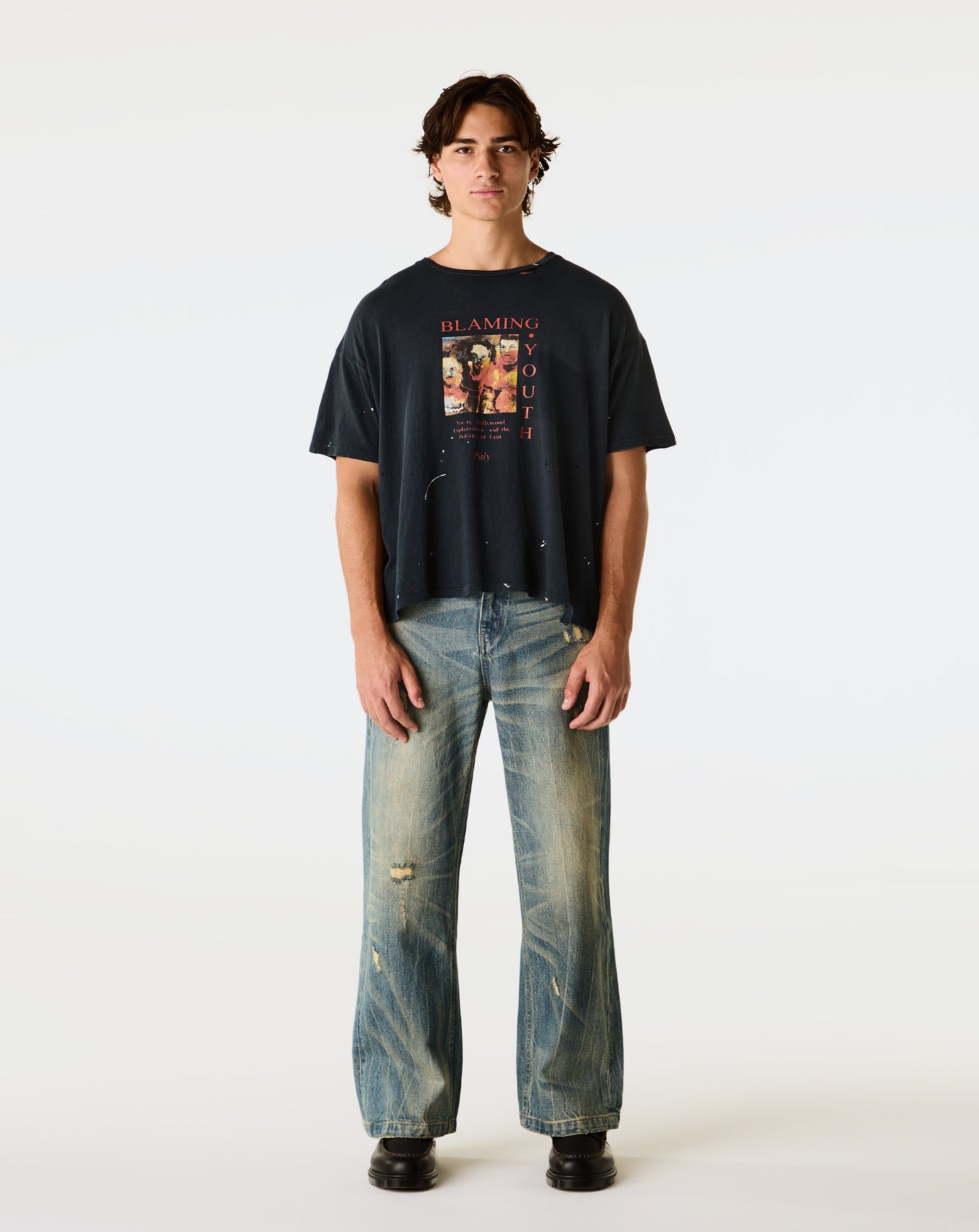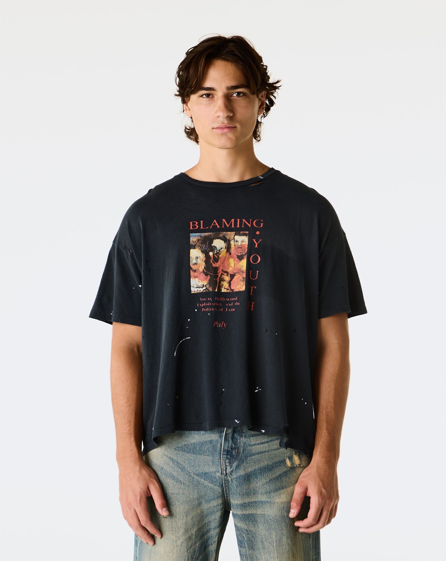 The Paly Hollywood Blaming Youth T-Shirt delivers a vintage-inspired look with distressed details and raw finishes. Designed in an oversized fit, this cotton t-shirt stands out with its graphic print.