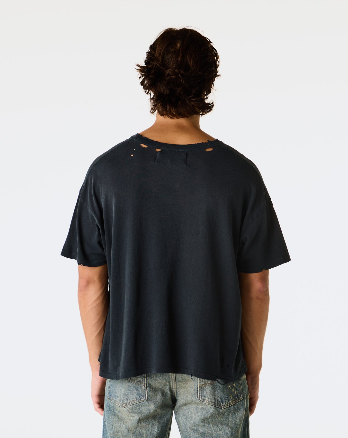 - Classic crew neck with fray details