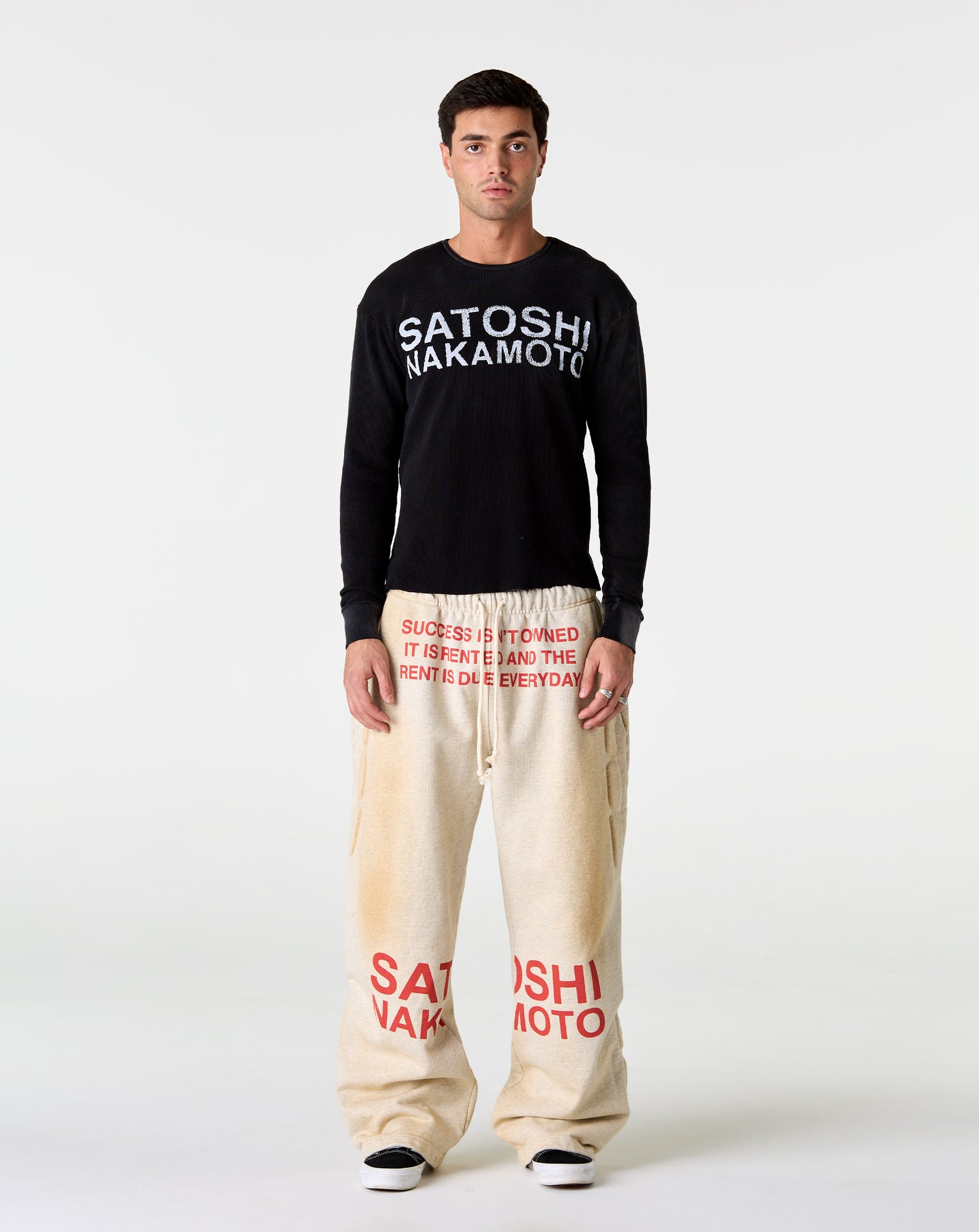 The Satoshi Nakamoto Success Enduro Sweatpants deliver a relaxed fit designed with a drawstring waistband and functional side pockets. Made from cotton and detailed with embossed elements and a front statement print.