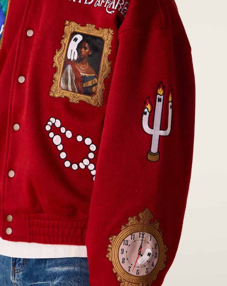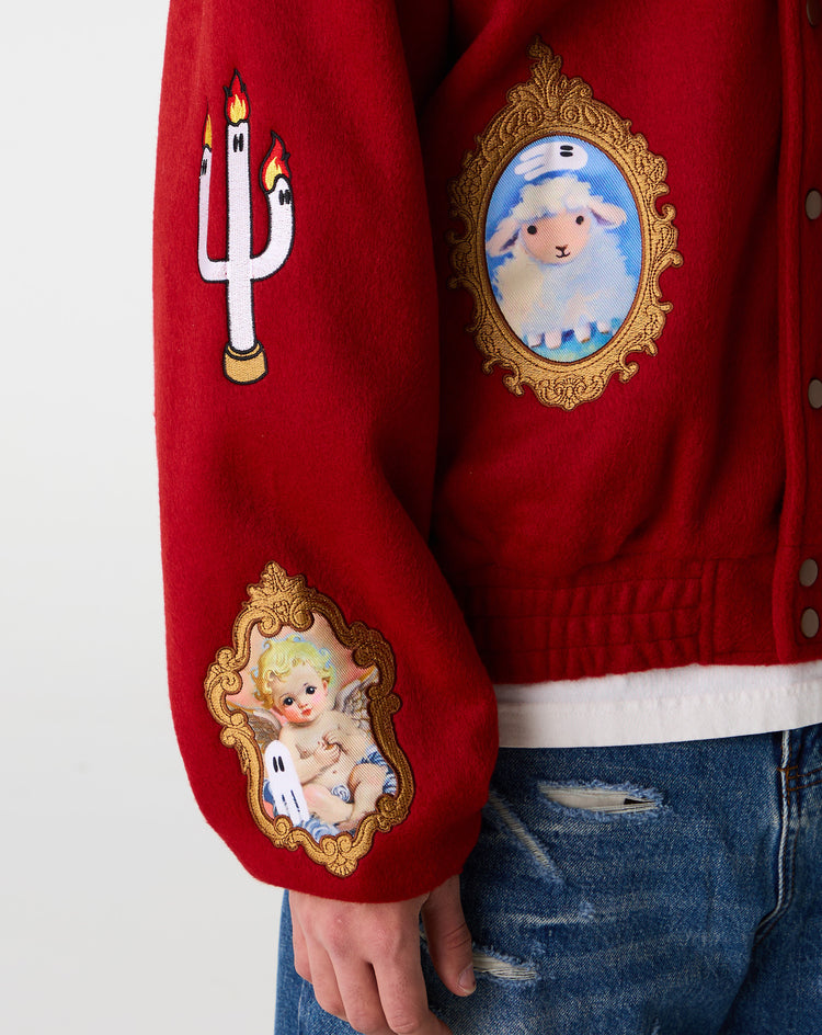 The WNTD WNTD King's Varsity varsity jacket boasts statement embroidered patches and a contrasting patterned inner collar lining. Relaxed fit and side pockets make this jacket perfect for everyday wear.