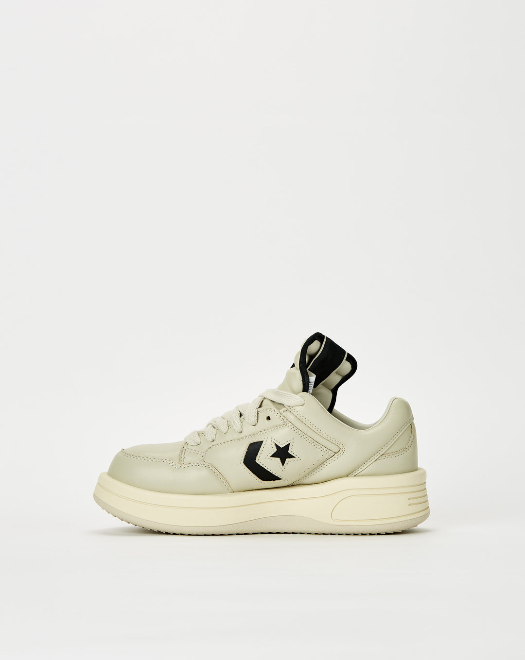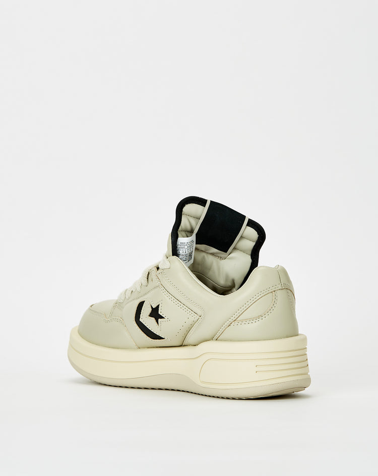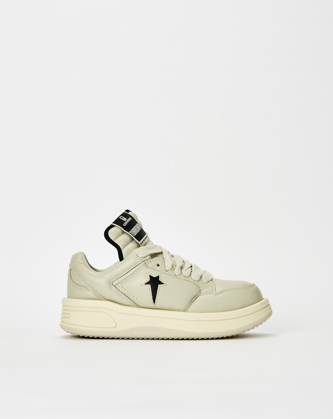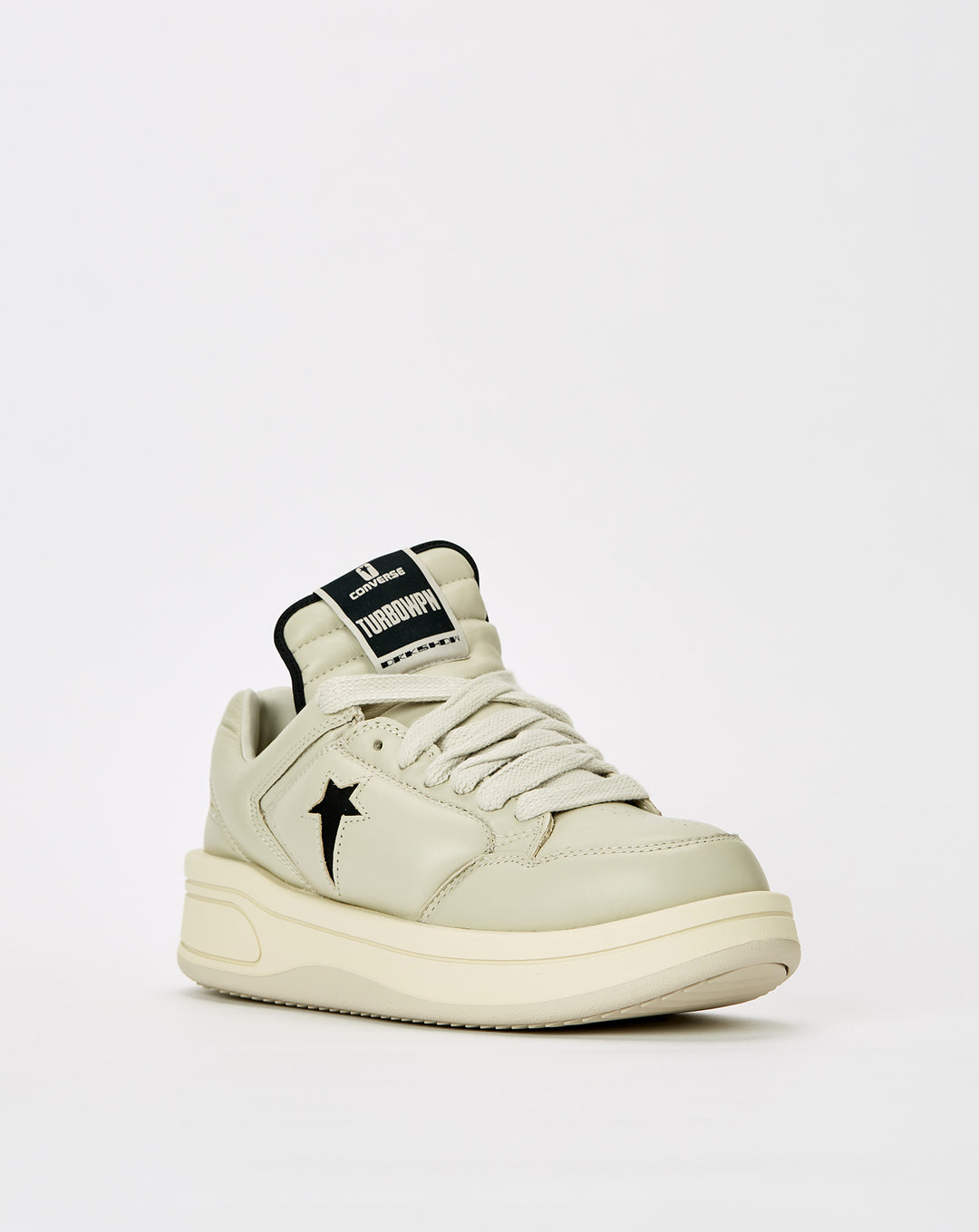 The Converse Rick Owens DRKSHDW x TURBOWPN OX sneakers boast a futuristic silhouette with an elongated tongue and perforated toe in supple leather. The foam midsole and rubber outsole provide comfort and traction.